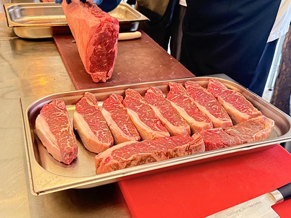 Шеф-спикер Павел Галковский, амбассадор американского красного мяса и опытный эксперт в работе с премиальными разрубами, представил рибай и стриплойн в градациях Прайм и Чойс. Он подробно продемонстрировал зачистку, нарезку и приготовление стейков, делясь практическими советами и секретами профессионалов.