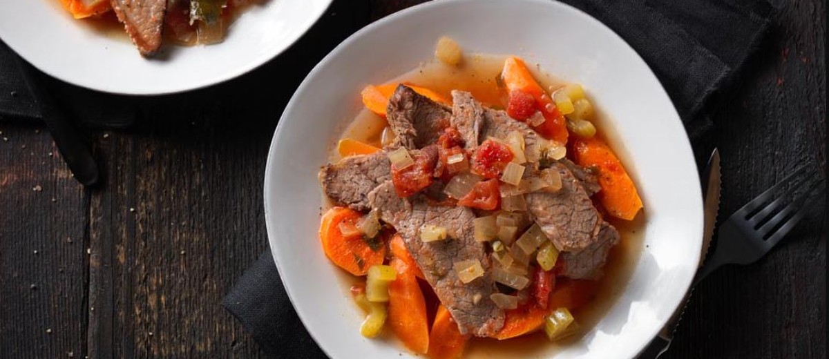 3. Добавьте морковь и петрушку, готовьте без крышки ещё 30 минут, пока мясо и овощи не станут мягкими.