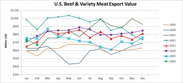 American Beef Export Trade Stats: February 2026