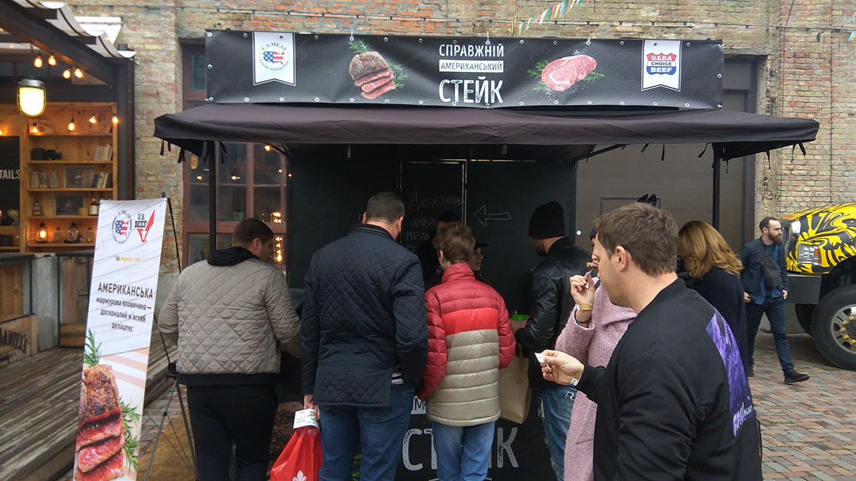 Аномально теплая погода в Киеве предоставила благоприятную возможность Американской Федерации по экспорту мяса (USMEF) принять участие в последнем в уходящем году Фестивале уличной еды, который проводился в «Арт-Платформе» в первые выходные ноября, и провести дегустацию американской мраморной говядины для участников Фестиваля.