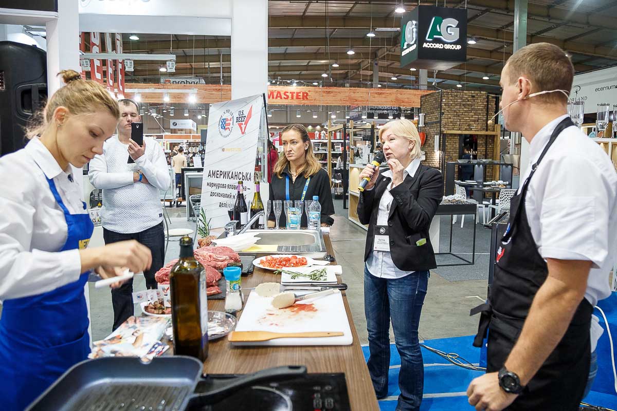 Генеральным партнером выставки выступила компания "Metro Cash & Carry Украина", на стенде которой прошли мастер-классы Американской Федерации по экспорту мяса (USMEF) по приготовлению стейков из премиальных разрубов американской говядины. Практическую часть провел шеф ресторанов "Тарантино" и "Веранда на Днепре" Сергей Башинский. Сергей проходил обучение в Техасе в этом году как по работе с американской говядиной, так и по работе с коптильнями.